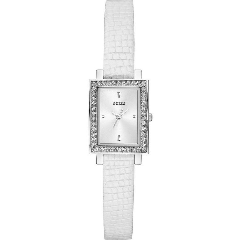 Orologio Guess Donna Laila W0734L5. Cassa (20 mm) in acciaio lucido con cristalli, quadrante e dettagli silver, cinturino in pelle bianco stampa lucertola.| Informazioni sul prodotto | |